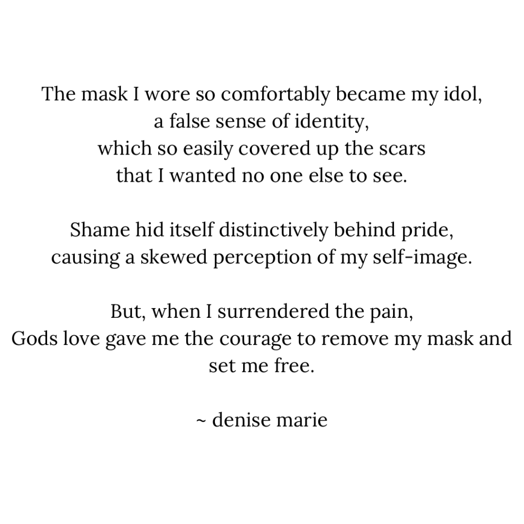 The mask I wear… December 6, 2020December 6, 2020 “So if the son sets you free, you will be free indeed”. – John 8:36**Artist Credit: Bri Wenke**#nolongerheldcaptive Share this: Share on Facebook (Opens in new window) Facebook Share on X (Opens in new window) X Share on Tumblr (Opens in new window) Tumblr Share on Pinterest (Opens in new window) Pinterest Print (Opens in new window) Print Email a link to a friend (Opens in new window) Email Like Loading... Related
